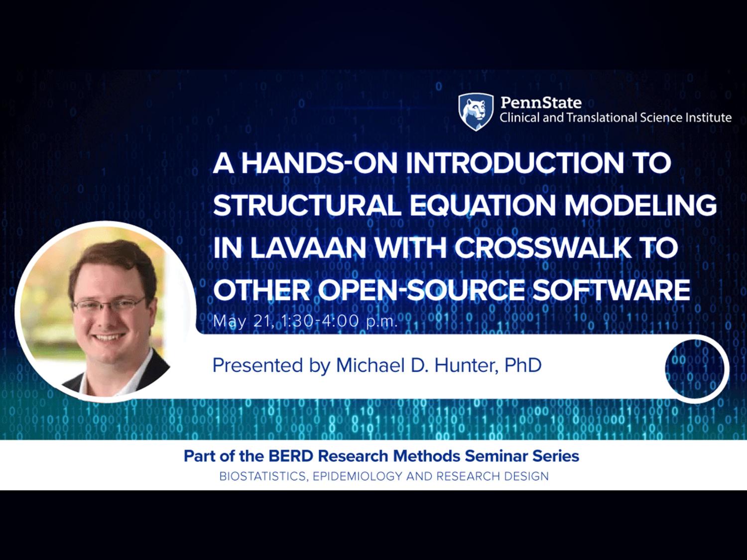 In this 2.5-hour workshop, Michael D. Hunter, assistant professor of human development and family studies, will give a brief, high-level overview of structural equation modeling, a way of representing multiple, simultaneous influences among a set of variables. With hands-on practical exercises, participants will be provided the skills needed to understand, interpret, and specify structural equation models in the R package lavaan. Tools will be provided to assist you in writing your own scripts and understanding the scripts that are widely available online. Finally, attendees will be provided with several online resources for pre-written scripts.