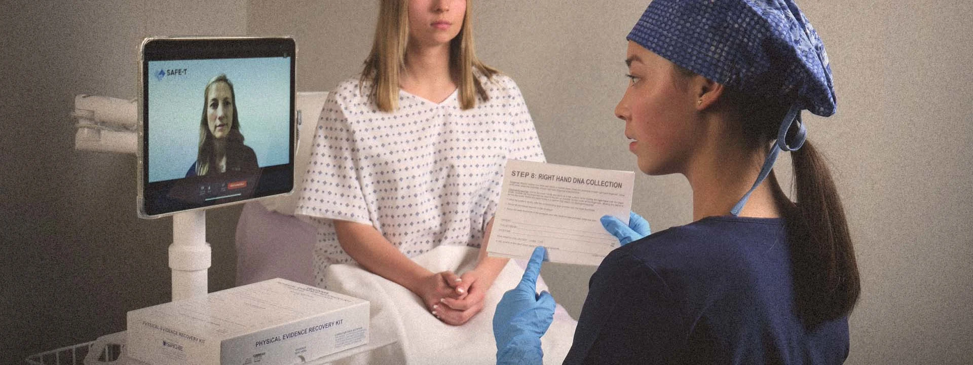 With the patient’s consent, SAFE-T pairs an on-site nurse with an expert, board-certified SANE during the medical exam to support both the patient and on-site nurses.